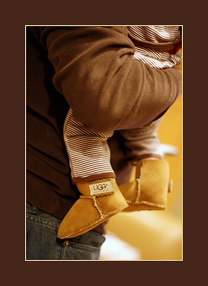 I just got a pair of these for Cruz. Obviously not real(ly expensive) ones. I bought the $15.00 Target ones that they only sell in the little girls section. I don't know why Target thinks that only baby girls need Uggs. But if I must crossdress my son in the name of fashion then so be it.